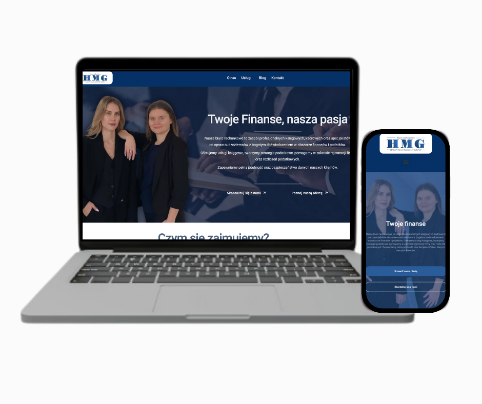 Stworzyłam profesjonalną, przejrzystą stronę internetową, która prezentuje usługi biura rachunkowego w nowoczesnym, zaufania budującym stylu. Strona zawiera sekcje: O nas, Usługi (księgowość, kadry, doradztwo podatkowe), Dla kogo (oferta dla firm i przedsiębiorców), zakładkę Kontakt oraz Blog z poradami podatkowymi. Dzięki responsywności i optymalizacji SEO, strona przyciąga nowych klientów i podkreśla profesjonalizm biura.